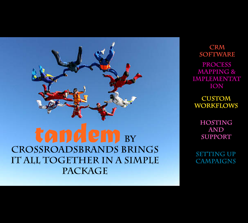 TANDEM from CrossRoadsBrands offers small and mid size businesses to take control of their Customer 360 degree insight. Account, Contact, Leads, Opportunities, Campaigns, Invoicing, Loyalty programs and much more. We can develop custom extensions to make it just one solution for a multi channel customer interaction. This coupled with Digital Marketing services makes it aend to end unique value proposition